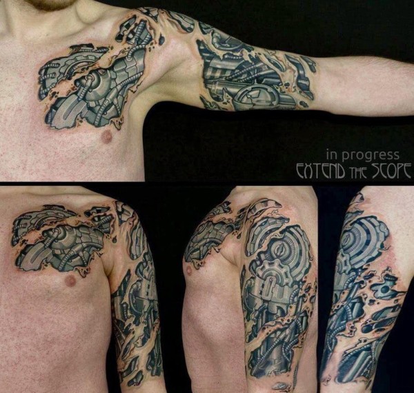 3d破皮机械纹身 男生手臂上帅气的3d破皮机械纹身图片