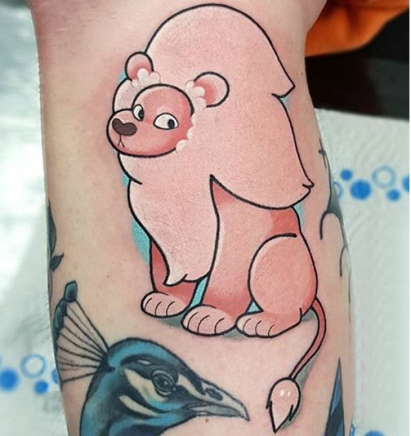 纹身卡通 女生小腿上彩色的卡通狮子纹身图片