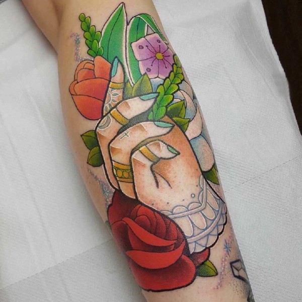 欧美小腿纹身 女生小腿上手部和植物纹身图片