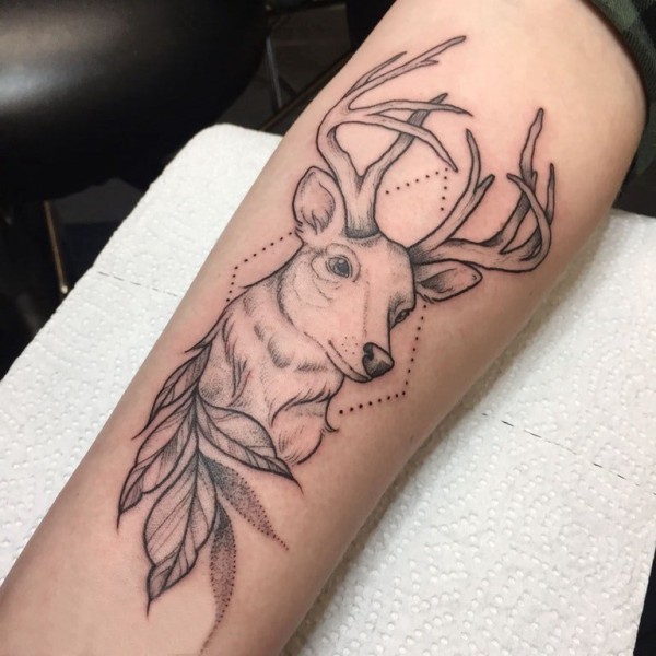 麋鹿纹身图片 女生手臂上植物和麋鹿纹身图片