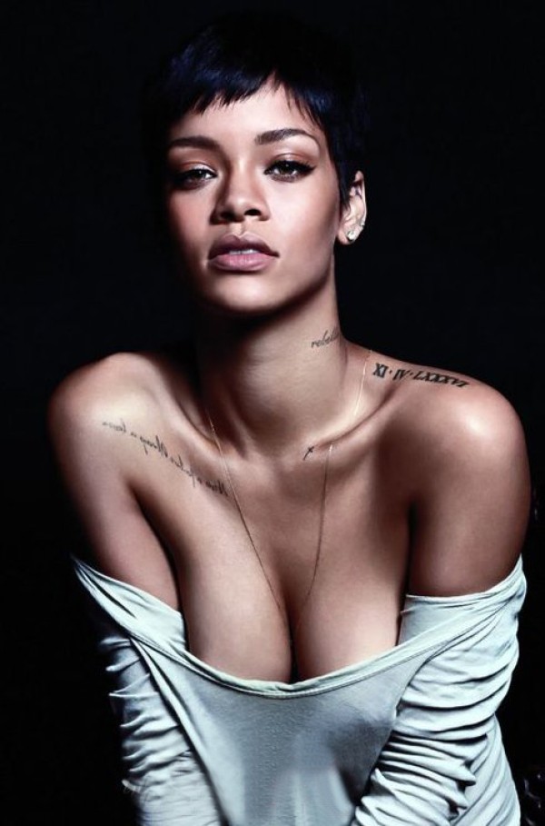蕾哈娜的纹身 明星身上罗马数字和英文纹身图片