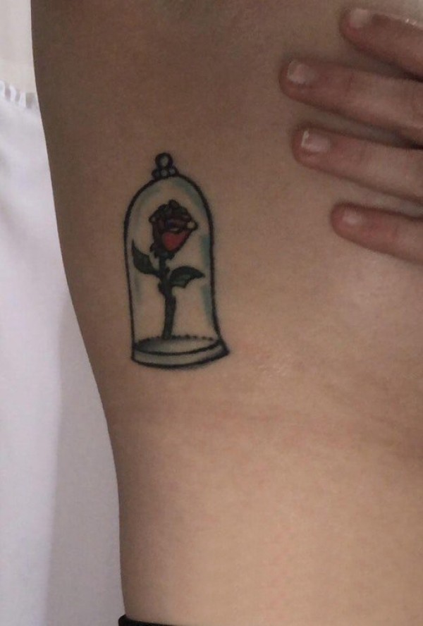 玫瑰纹身图 女生侧腰上精心呵护的玫瑰纹身图片