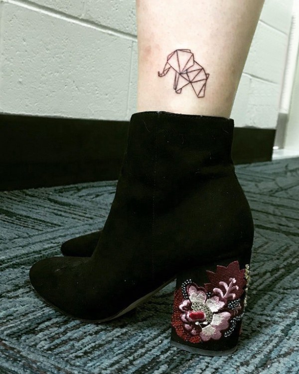 几何动物纹身 女生脚踝上黑色的大象纹身图片