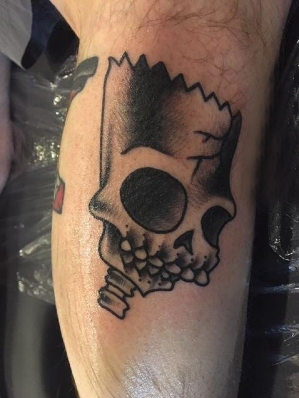 骷髅男孩纹身 男生小腿上黑色的骷髅纹身图片