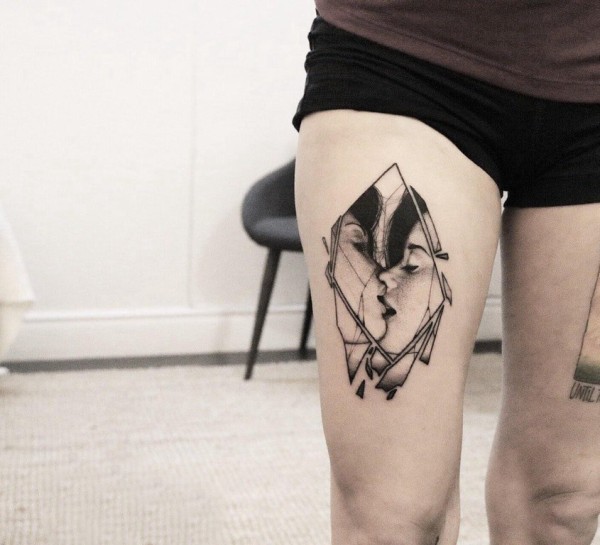 纹身头像情侣 男生大腿上几何和情侣人物纹身图片