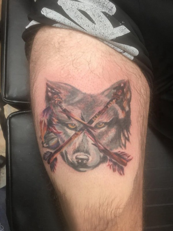 滴血狼头纹身 男生大腿上狼头和箭纹身图片