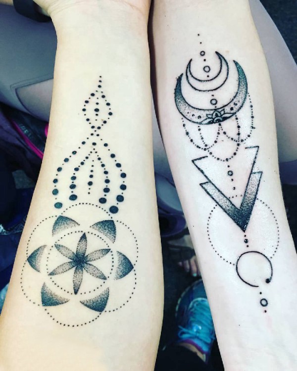 纹身点刺技巧 情侣手臂上黑色的创意纹身图片