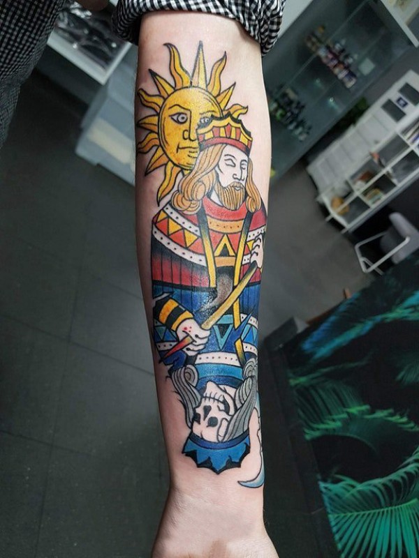 扑克牌纹身 女生手臂上太阳和扑克牌纹身图片