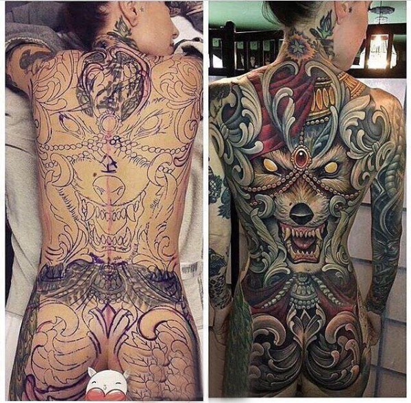 满背动物纹身 女生满背彩绘的动物纹身图片