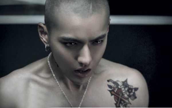 中国纹身明星 吴亦凡肩部彩绘的花朵纹身图片