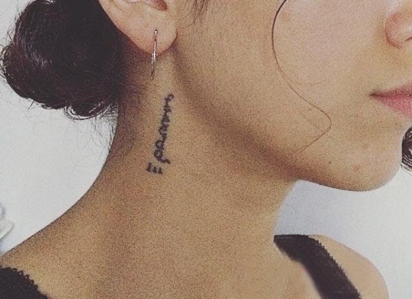 女生脖子纹身 女生脖子上极简的文字纹身图片