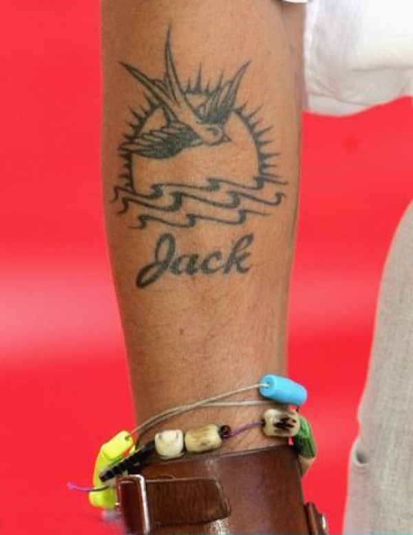 国际纹身明星 Johnny Depp手臂上鸟和太阳纹身图片