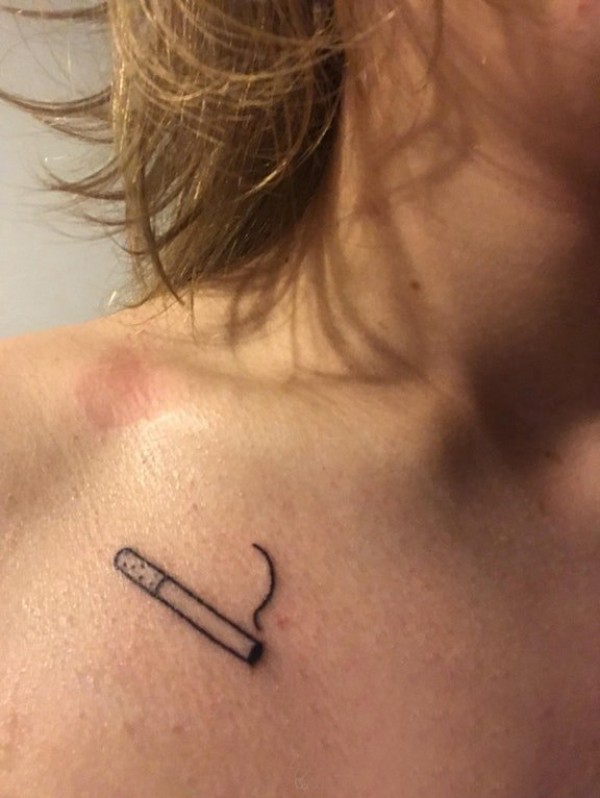 香烟图案纹身 女生锁骨上黑色的香烟纹身图片