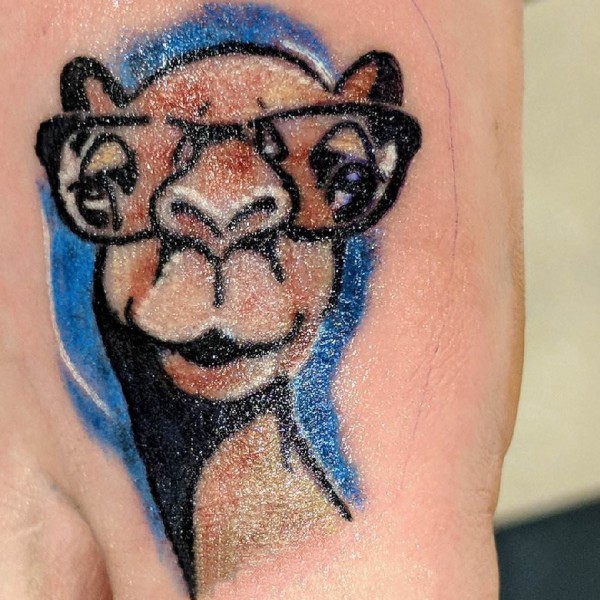 大臂纹身图 男生大臂上彩色的骆驼纹身图片
