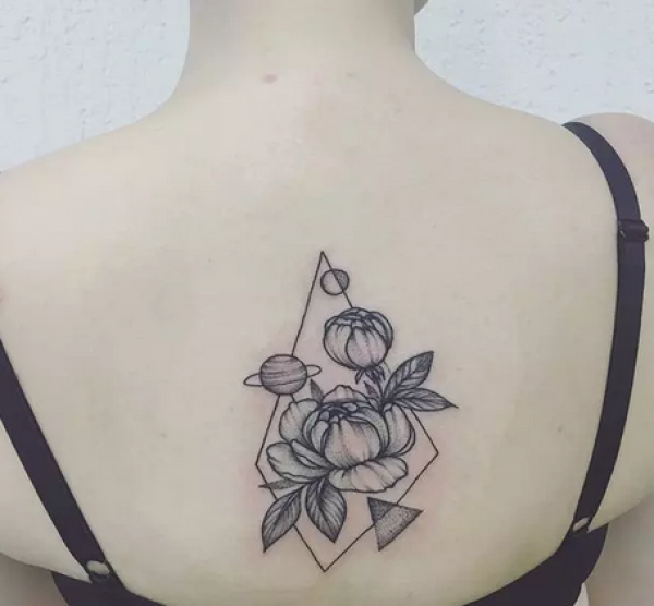 新传统风格的9张男性黑灰大满背纹身图案图片
