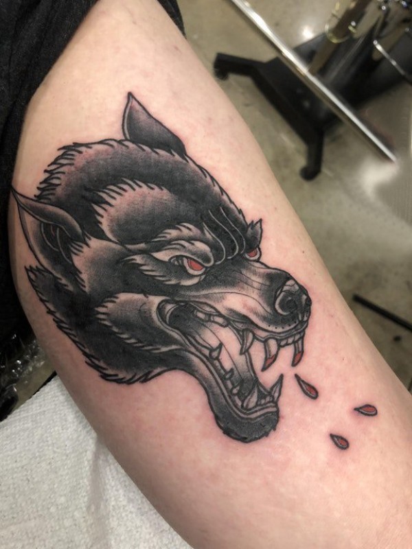 滴血狼头纹身 男生手臂上黑色滴血狼头纹身图片