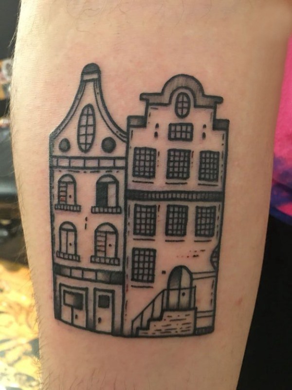 欧美小腿纹身 男生小腿上黑色的别墅纹身图片