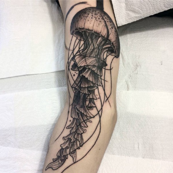 水母纹身图案 女生手臂上唯美的水母纹身图片