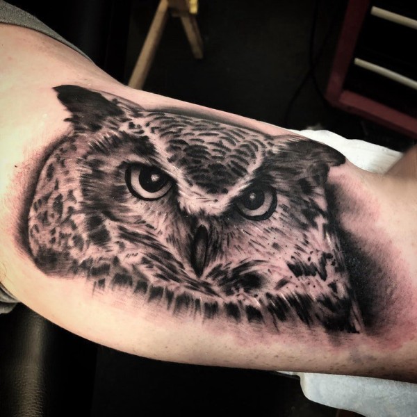 猫头鹰纹身 男生手臂上黑色的猫头鹰纹身图片