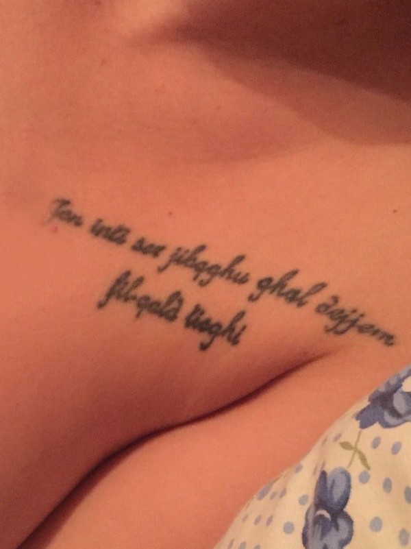 英文短句纹身 男生胸部黑色的英文短句纹身图片