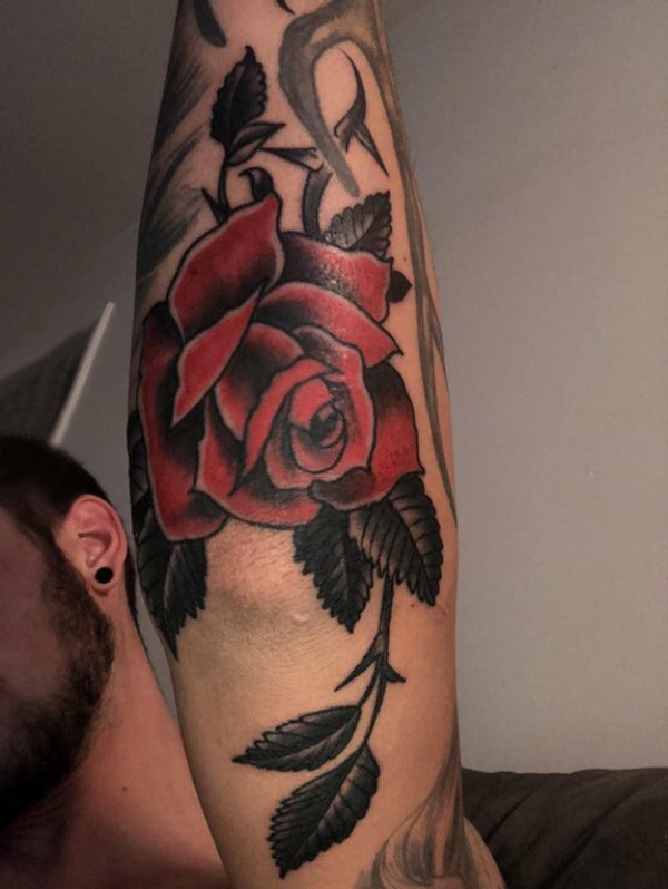 纹身玫瑰花 男生手臂上彩绘的玫瑰花纹身图片
