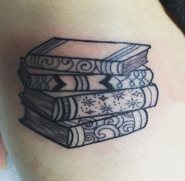 纹身书籍 女生大腿上黑色的书籍纹身图片