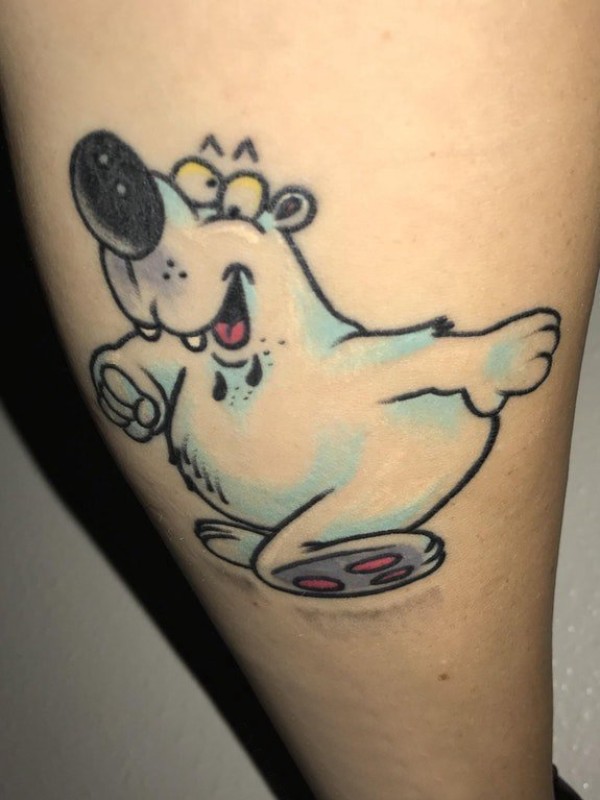 纹身卡通 女生大腿上彩色的小白熊纹身图片