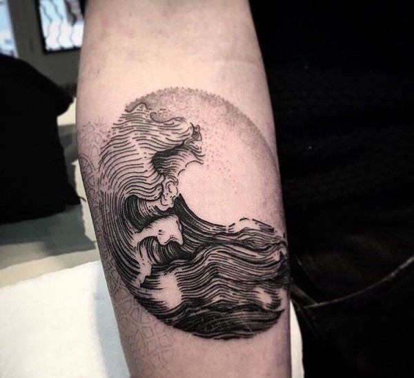 纹身黑色 男生手臂上黑色的浪花纹身图片