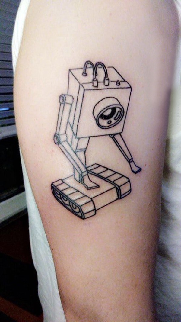 几何元素纹身 男生大臂上黑色的机器人纹身图片