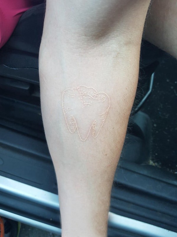 牙齿图案纹身 男生手臂上白色的牙齿纹身图片