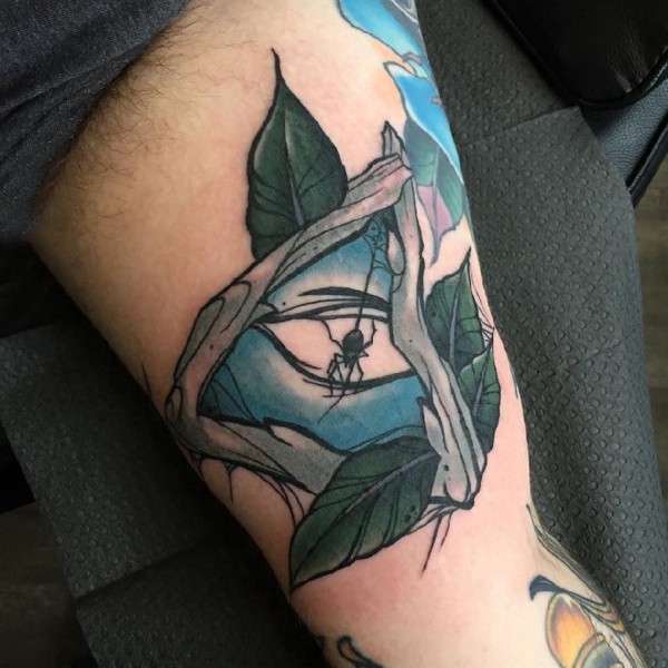 纹身树枝 男生手臂上彩绘的树枝和几何纹身图片