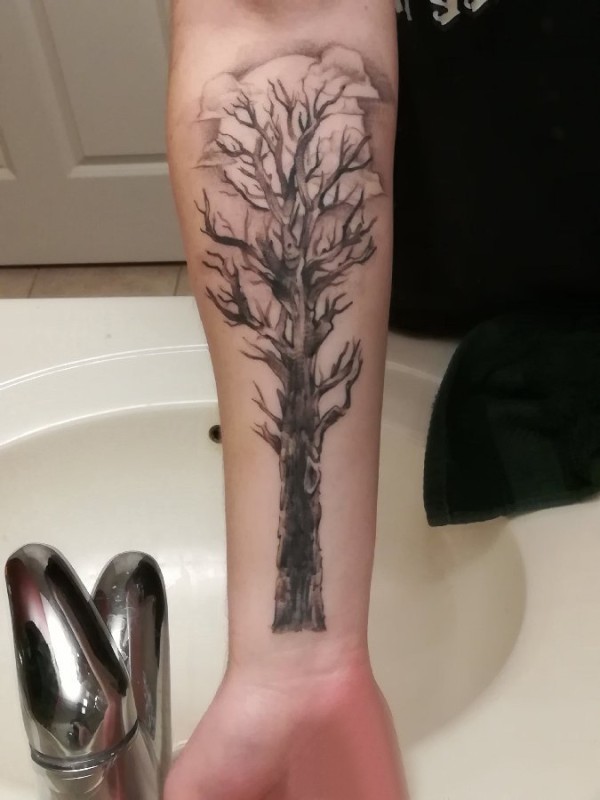植物纹身 男生手臂上黑色的枯树枝纹身图片