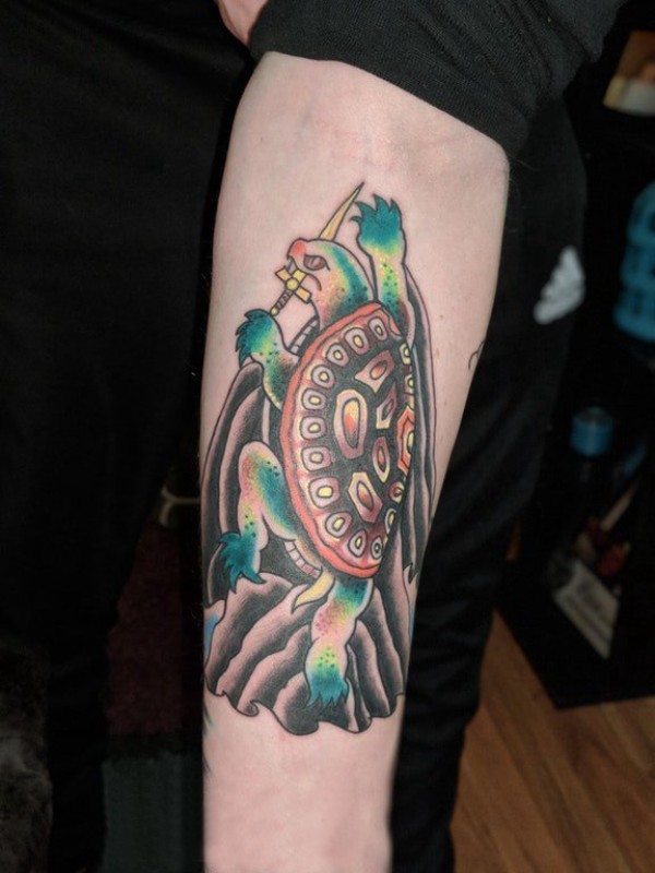 龟纹身 男生手臂上匕首和乌龟纹身图片
