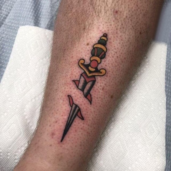 欧美匕首纹身 男生手臂上彩绘的匕首纹身图片