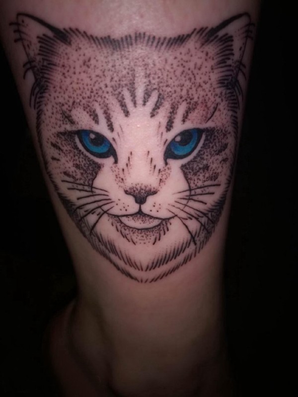 小猫咪纹身 女生小腿上彩绘的小猫咪纹身图片