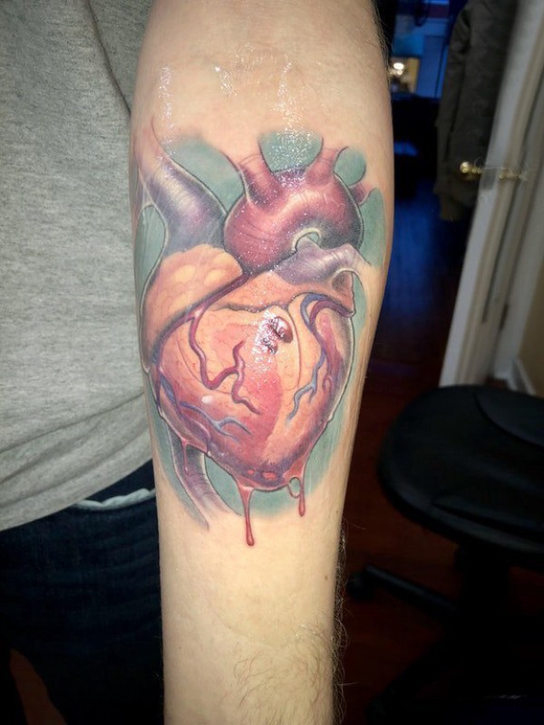 手臂纹身素材 男生手臂上鲜活的心脏纹身图片