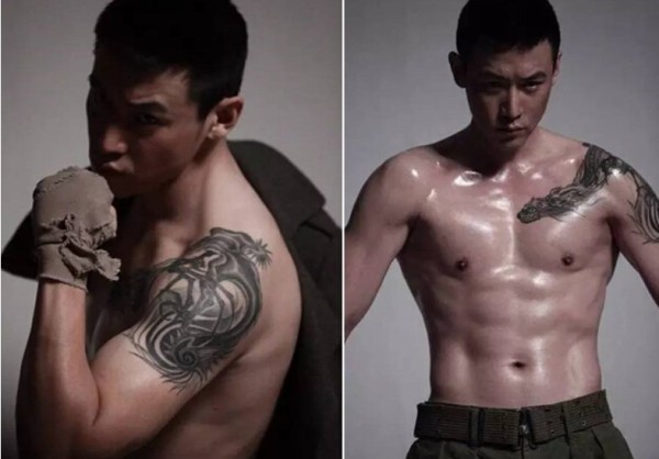 陆毅纹身图 明星肩膀上黑色的动物纹身图片
