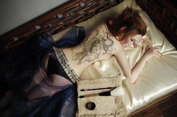 戚薇纹身图 明星满背彩绘的龙纹身图片