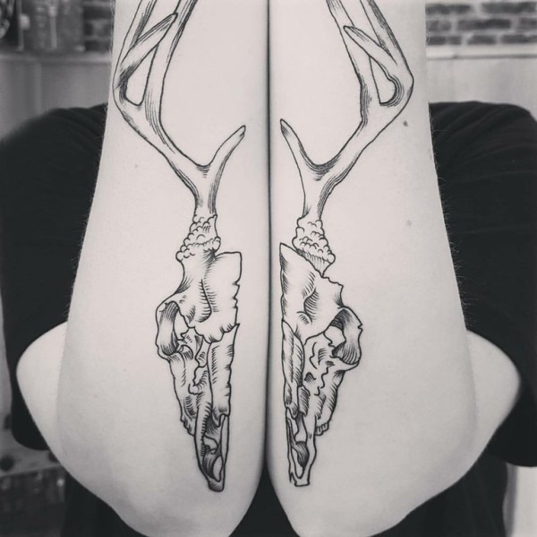 对称纹身图案 女生手臂上黑色的头骨纹身图片