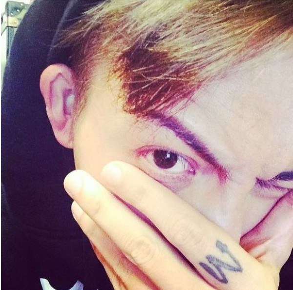 中国纹身明星 陈伟霆手指上黑色的字母纹身图片