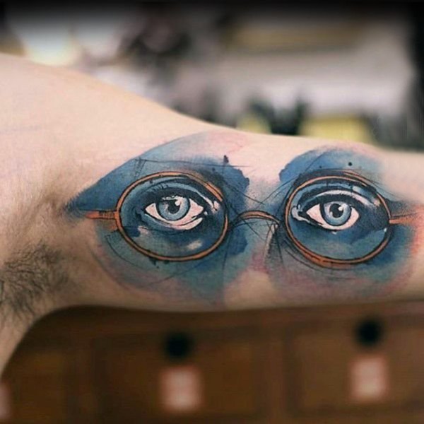 眼睛纹身 男生大臂上彩色的眼睛纹身图片