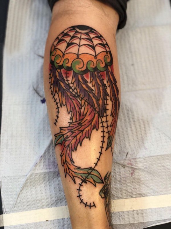 小腿对称纹身 男生小腿上彩色的水母纹身图片