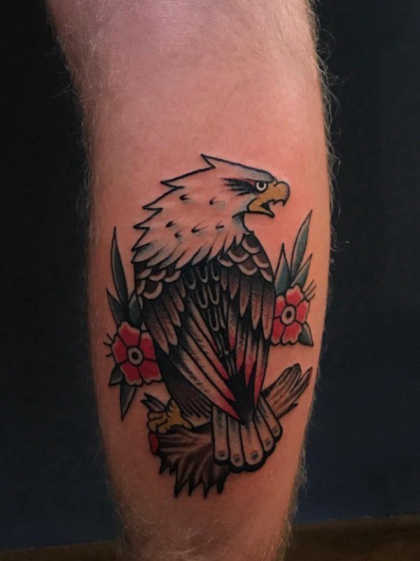 欧美小腿纹身 男生小腿上花朵和老鹰纹身图片