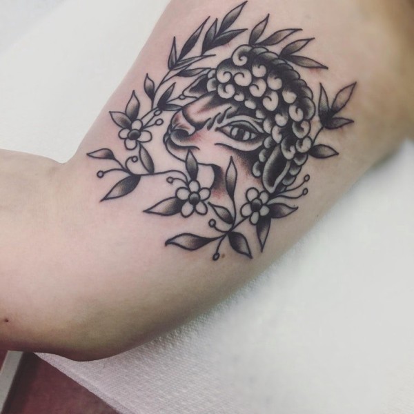 文艺鹿纹身 女生手臂上黑灰色的文艺鹿纹身图片