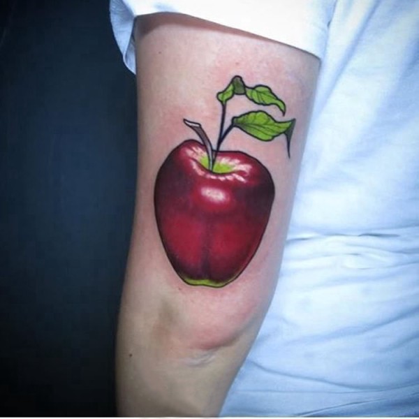 纹身食物 男生手臂上彩色的苹果纹身图片