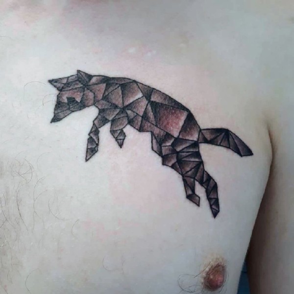 纹身胸部男 男生胸部黑色的几何狐狸纹身图片