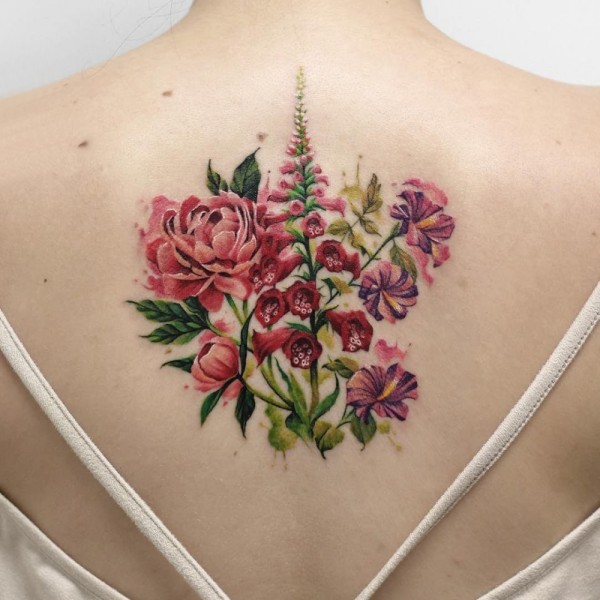 纹身后背女 女生后背上娇艳的鲜花纹身图片