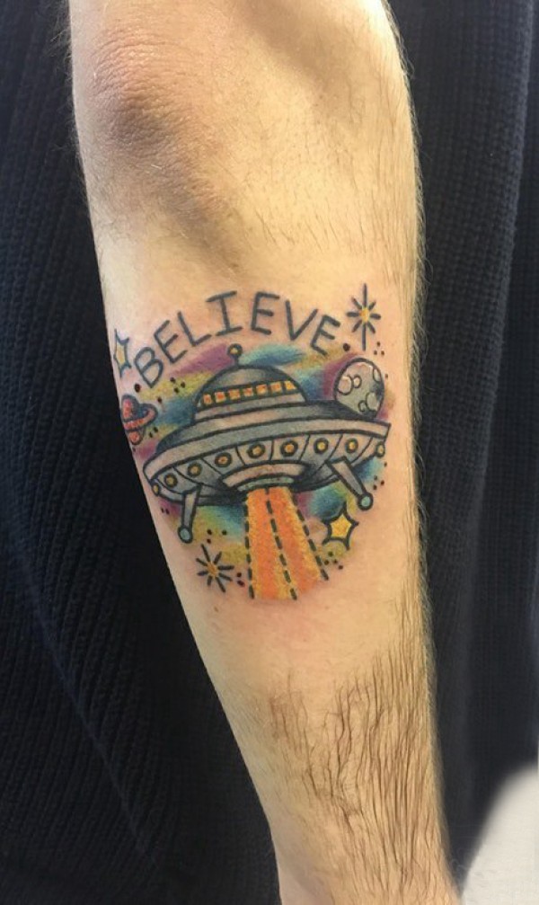 手臂纹身素材 男生手臂上英文和飞碟纹身图片