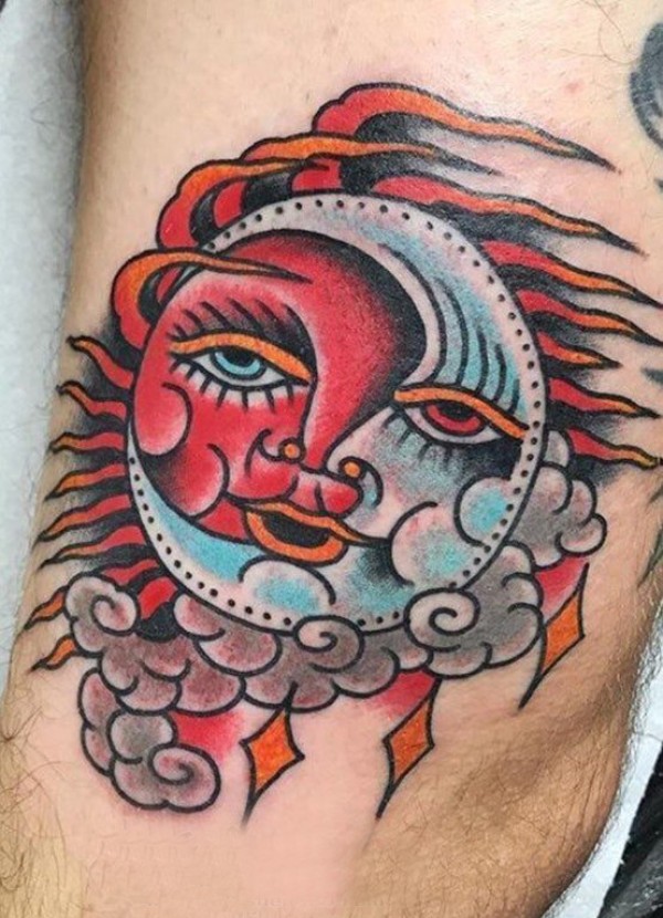 欧美小腿纹身 男生小腿上月亮和太阳纹身图片