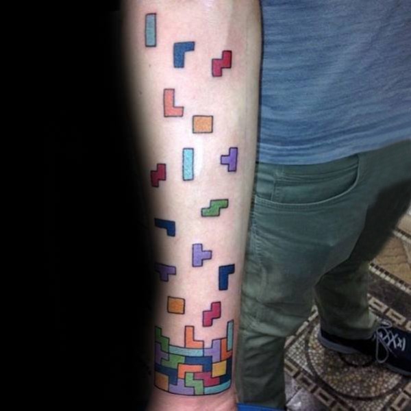 游戏 纹身 承载着童年记忆的俄罗斯方块纹身图案